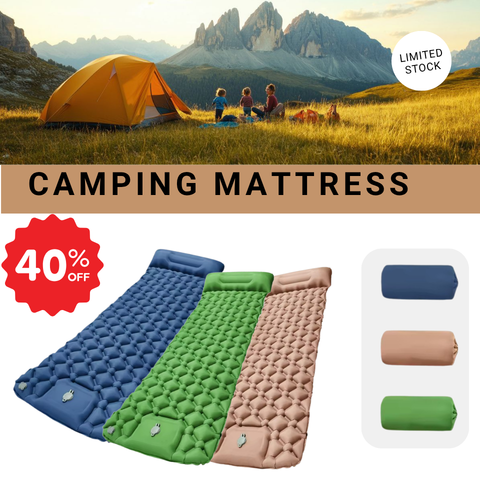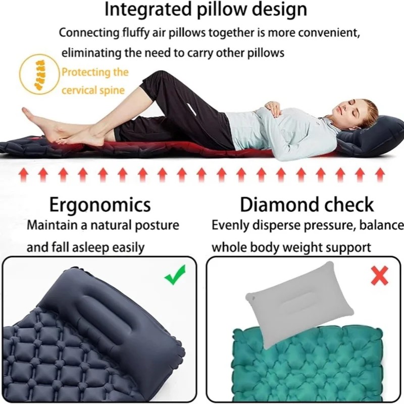 The self-inflatable sleeping mat for camping adopts a creative design, combined with human body mapping technology, to provide a perfect, durable, and ultra-comfortable camping experience suitable for any sleeping position. As well as the built-in camping pillow, which is designed to relieve pressure on your back and neck, giving you the freedom to adjust your body balance and comfort, whether lying on your back or side, ensuring maximum comfort and warmth throughout your night's sleep!